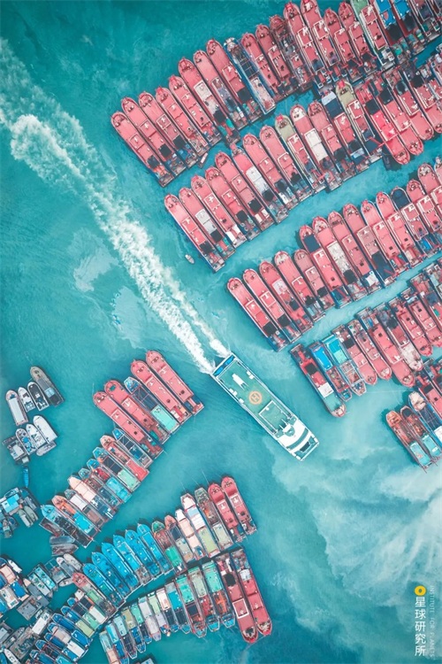 请横屏观看,北海国际客运港内整齐的船只 | 摄影师@梁杰