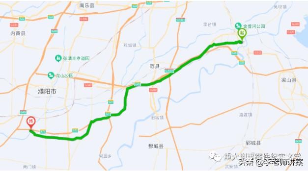 这位受害人不知道叫什么,坐在副驾驶的李文安突然下车就掐住了受害人的脖子,这次吸取了教训,只是把受害人掐晕了,受害人根本没有还手之力,就被李文安拖到了出租车的后排,然后他们又把出租车开到了荒无人烟的金堤河,这个金堤河是一个湿地公园,距离濮阳县一号路105公里,开车需要两个半小时;