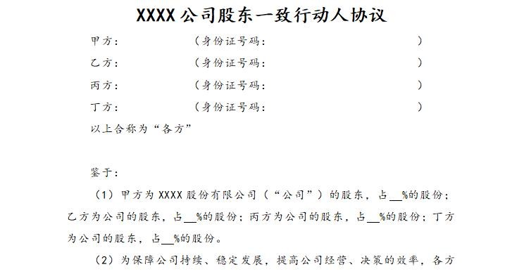 《一致行动人协议》范本及各条款深度解析