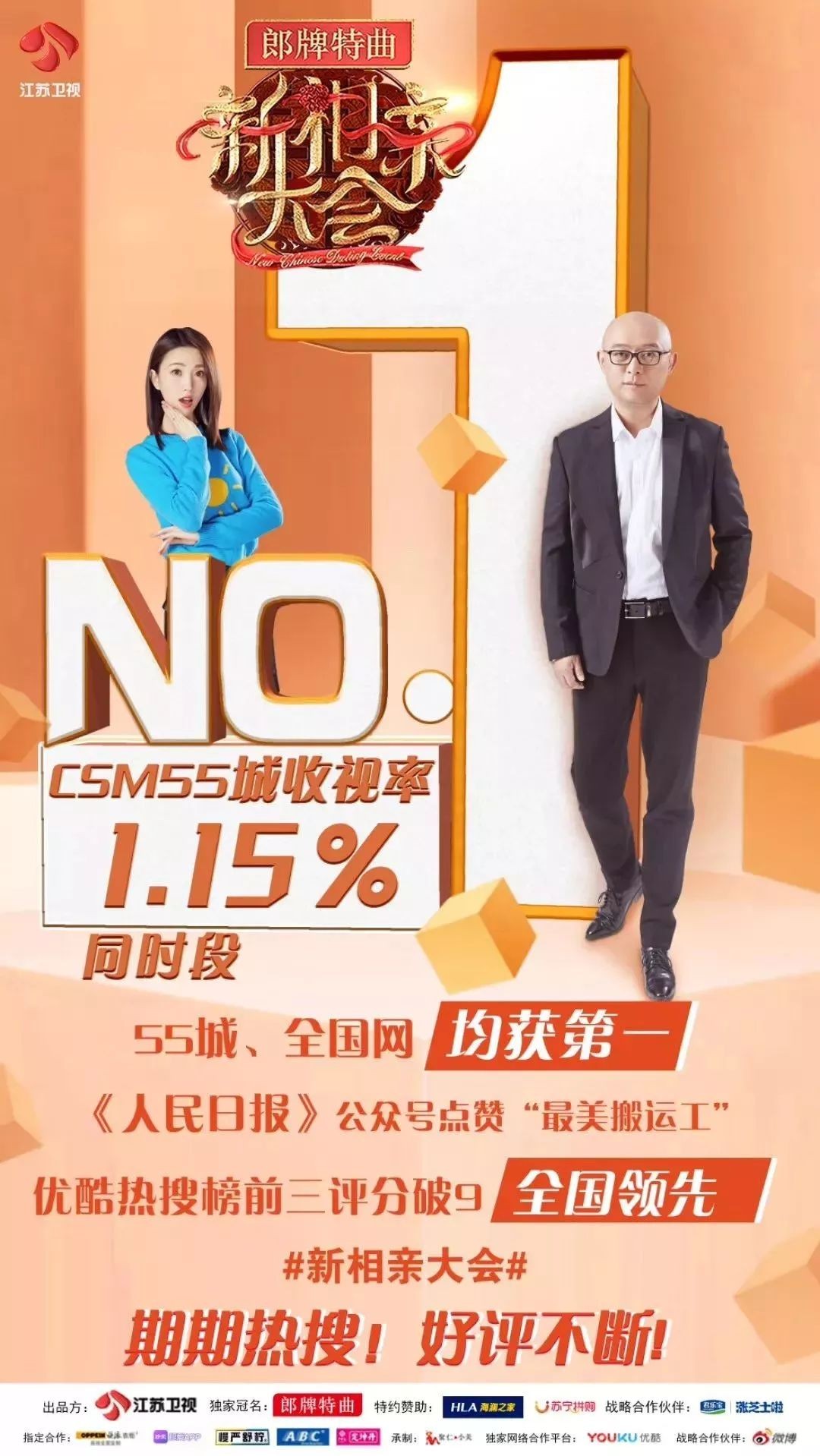 爆款永远是稀缺资源,这是不争的事实。客户品牌因为避风险心理,会更多将目光聚焦到综N代和明星综艺上。江苏卫视这档纯素人的《新相亲大会》,作为综艺新品的第一季,截止目前创造了已播11期节目平均收视率达1.07%的佳绩。从白酒到服装,从女性护理到日用食品,节目还同时创下获9家商业支持的同类节目巅峰。