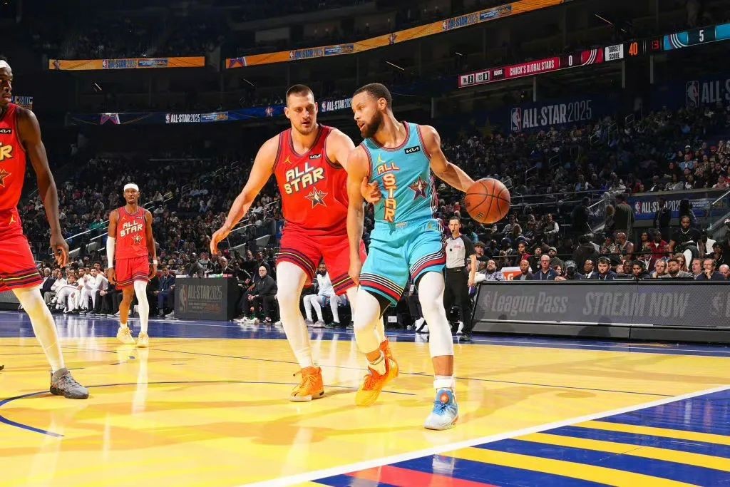 提及库里,全明星赛MVP这一称号于他而言,可谓实至名归。他的三分球精准得堪称神来之笔,每次出手仿佛皆为命中注定一般,就这样引领着沙克队一路轻松迈向胜利。