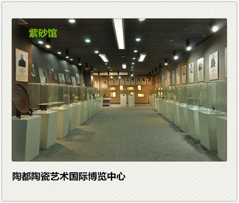 陶瓷城内总面积达23000平方米的“陶都陶瓷艺术国际博览中心”,她是镶嵌在陶瓷王国里的一颗璀璨明珠,共分三层。第一层为闻名天下的宜兴紫砂展销区即紫砂广场,共有宜兴紫砂工作室100多间,还有1200多平方米的大型展馆,可承接和举办各类展览展评、交流拍卖等大型活动。