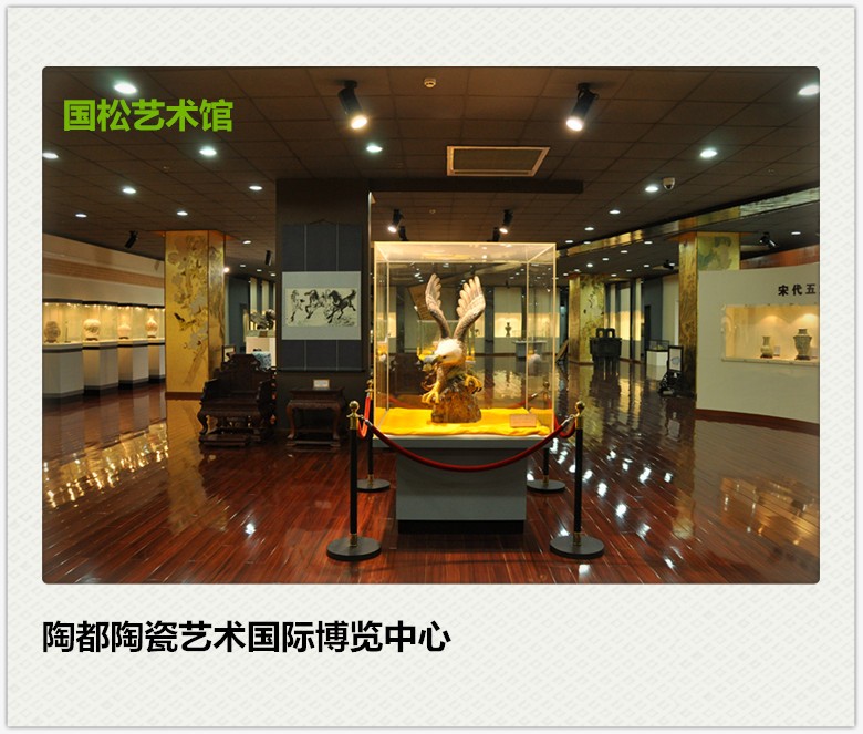 第三层为全国陶艺珍品展示区,即“宜兴市国松艺术馆”,集中展示了全国近800位国家级、省级工艺美术大师、陶瓷艺术大师千余件精品佳作,这些稀世珍宝荟萃一堂,芳容玉韵灼灼生辉,在国内尚属首家。该中心海纳百川,集天下名窑名陶名瓷于一体,汇华夏名人名品名作于一堂,是展示古今陶艺精品的殿堂,是与世界交流陶瓷文化的平台,是发布和传播陶瓷信息的枢纽,也是陶瓷购物者的天堂,珍品收藏者的乐园,是世界、陶文化的旅游胜地。您来到这里,能一日看遍全国的陶瓷精华,一日购到全国的陶瓷精品,一日饱览全国的陶瓷文化,充分领略中华陶瓷的无穷魅力。