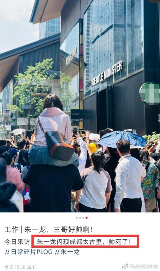 当天朱一龙现身成都太古里参加线下活动,虽然他是在商场内,但商场外已经拥堵了很多的粉丝。热情的粉丝将商场外围堵得水泄不通,甚至有人骑在朋友肩膀上,只为一睹朱一龙的真容。