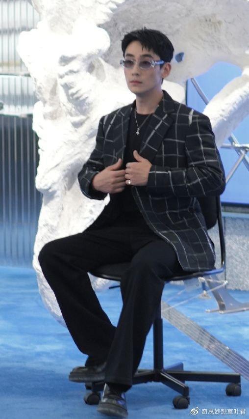 当天朱一龙打扮得十分潮酷,虽然是all balck,但是搭配得很有层次感,尤其是外面的格纹西装,更是潮酷满满。