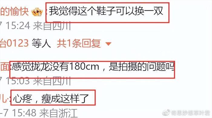 有网友表示朱一龙的鞋子可以换一双,还有人觉得朱一龙的看上去没有180cm,当然也不排除是拍摄角度的问题,毕竟换另一个角度后,朱一龙明显挺拔了很多。