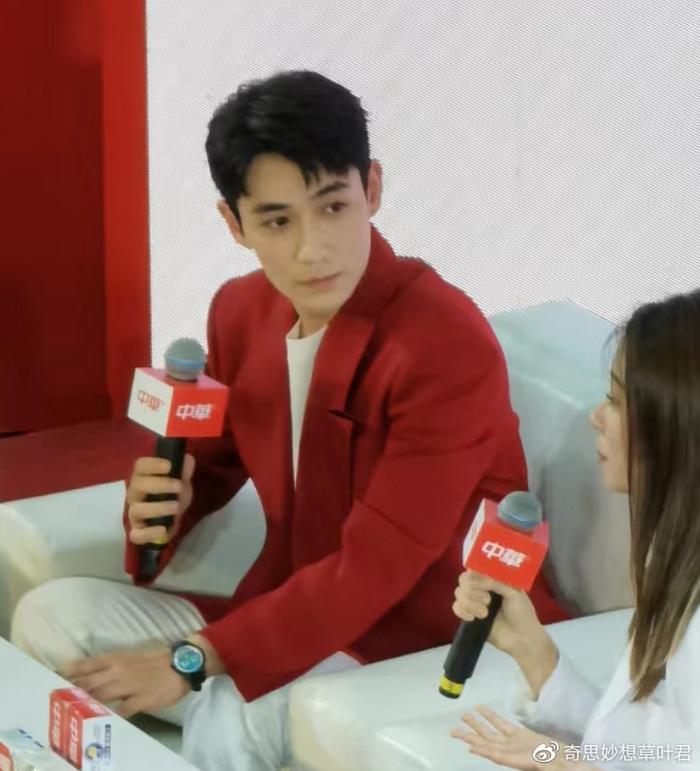 当天朱一龙穿着红色西装搭配白色套装现身,穿搭也是契合品牌的配色。他留着一头清爽利落的头发、面容清新帅气,认真配合主持人互动,十分敬业。