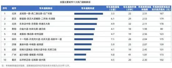 这个榜单是以驾车通勤热度来排行的,而人均通勤月损失是按当地人均月工资*延误时间来算的,单位时间内通勤该路段的人和车越多,社会的总损失也就越多。