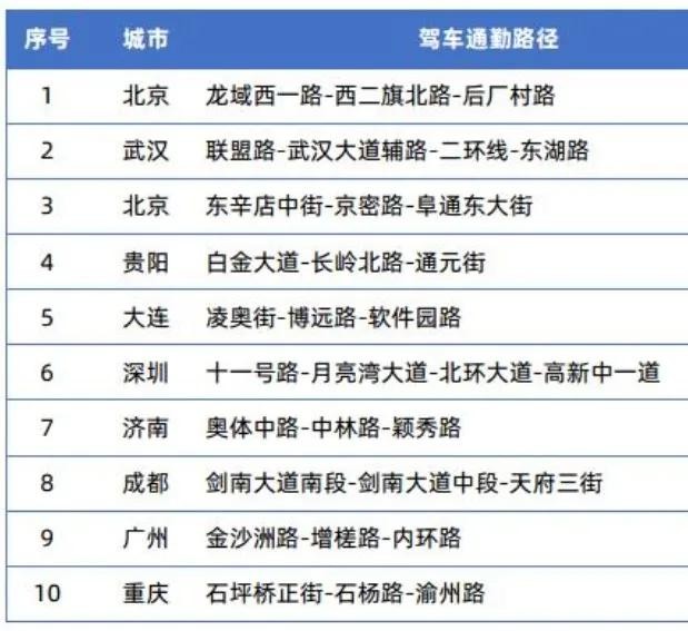 全国十大“拥堵”上班路,你所在的城市排第几?
