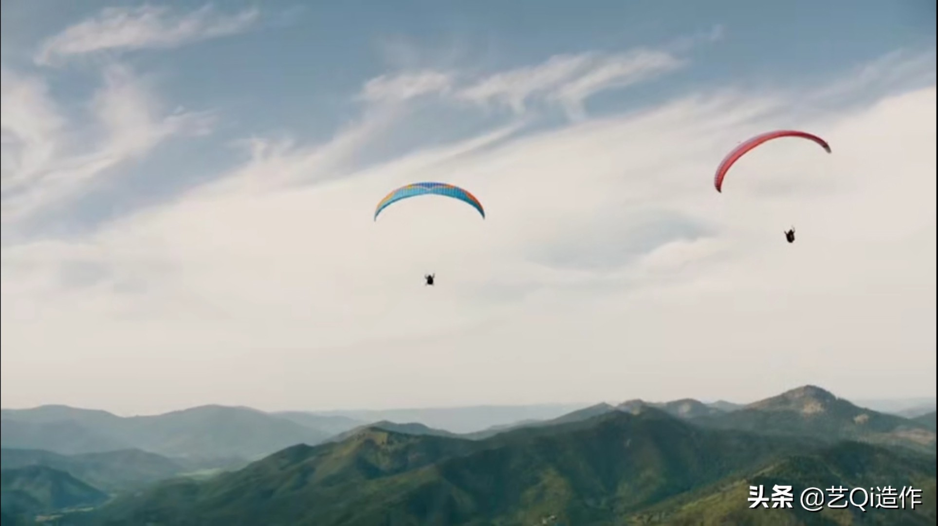 留意到菲利普和戴尔的滑翔伞一蓝一红成双成对颇有几分趣味