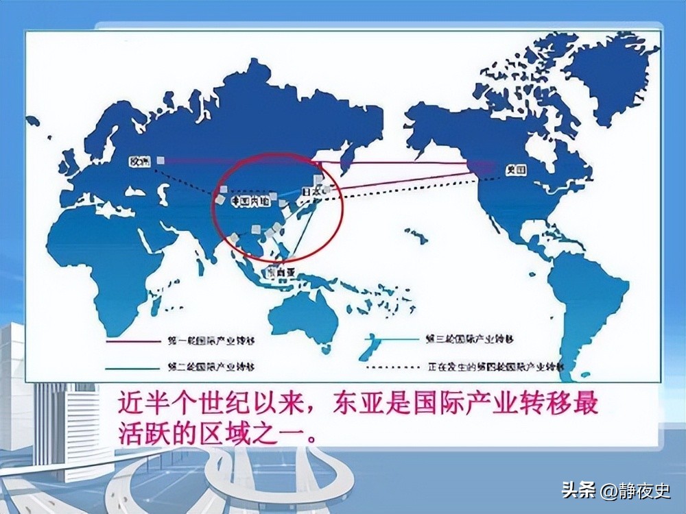 从二战结束以来,世界范围内共发生过三次大规模的产业转移,分别是美国向日本的产业转移,美国和日本向“亚洲四小龙”的产业转移,以及美日及“亚洲四小龙”向中国的产业转移。