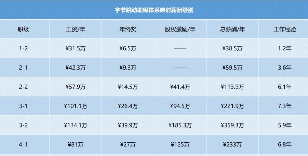 而她的级别一般是3-1或3-2,这也显示出字节跳动对于技术人才的高度重视。