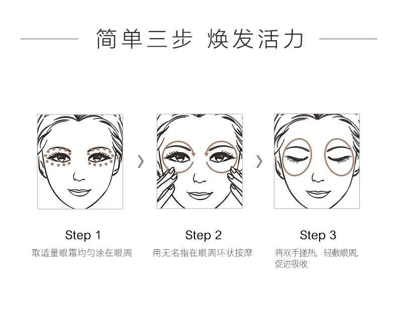 眼霜选择滋润度高、锁水效果比较好的乳霜妆眼霜。加以适度的按摩让眼霜更好的得到吸收。