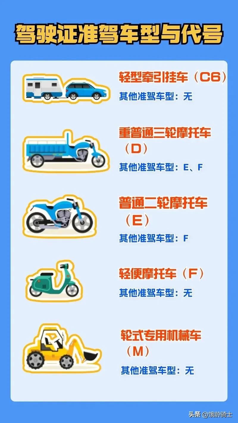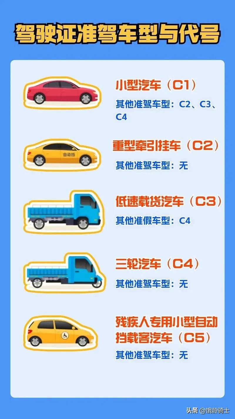 具体不同驾照类型所对应可驾驶的车型如下图: