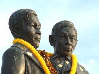 父亲是中国人,母亲是泰华混血儿。当地人也叫他们中国双胞胎“”——兄弟俩共用一个胸腔,是对连体婴儿。
