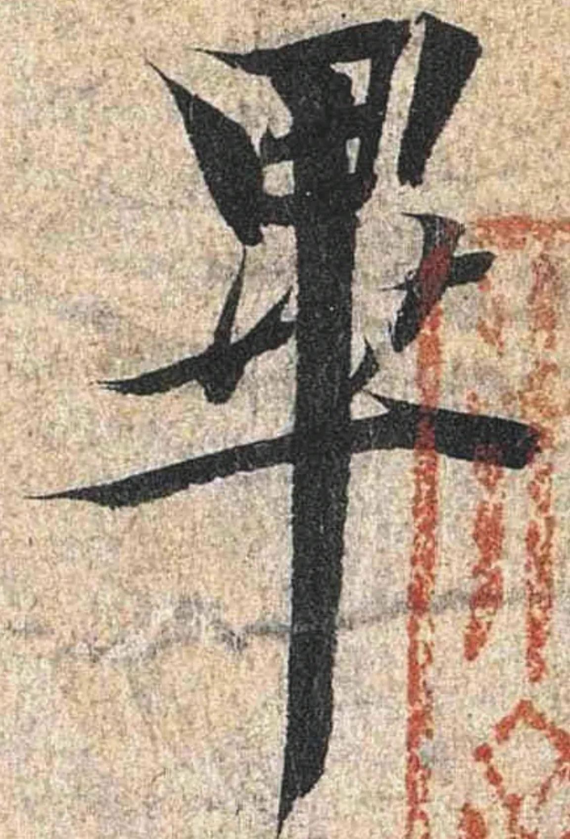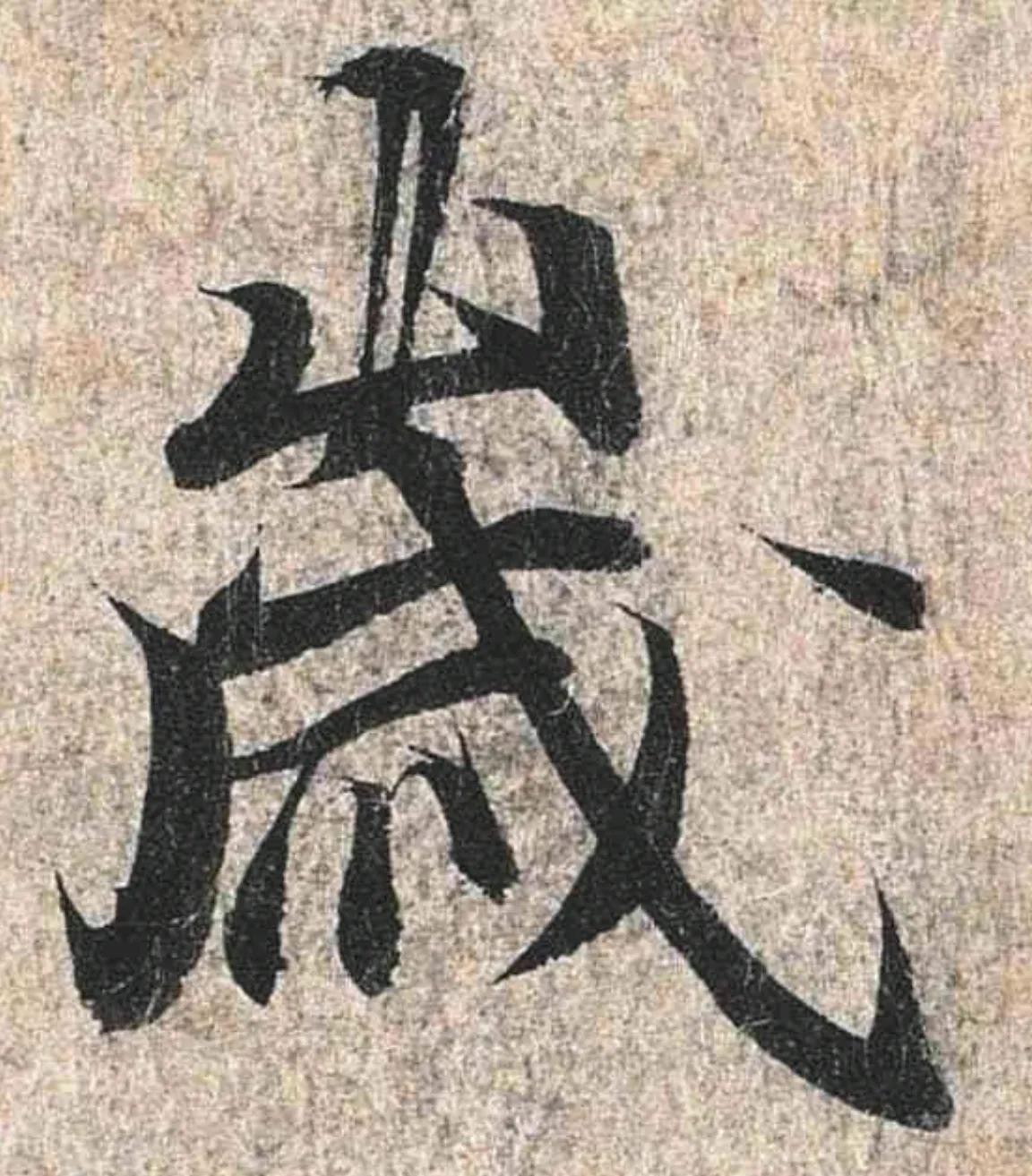 其中有很多“破锋”和“剥落的痕迹”,比如有“破锋”的“岁”、“群”、“毕”、“然”等字,“剥落成断笔”的“足”、“游”、“可”等字他都忠实的描摹下来,可以说这件作品在复制的时候,本着一种高度还原的态度在钩摹,其还原程度是其他兰亭序版本不可比拟的,这也是我们今天学习兰亭序基本都是以“神龙本”为蓝本的原因之一。