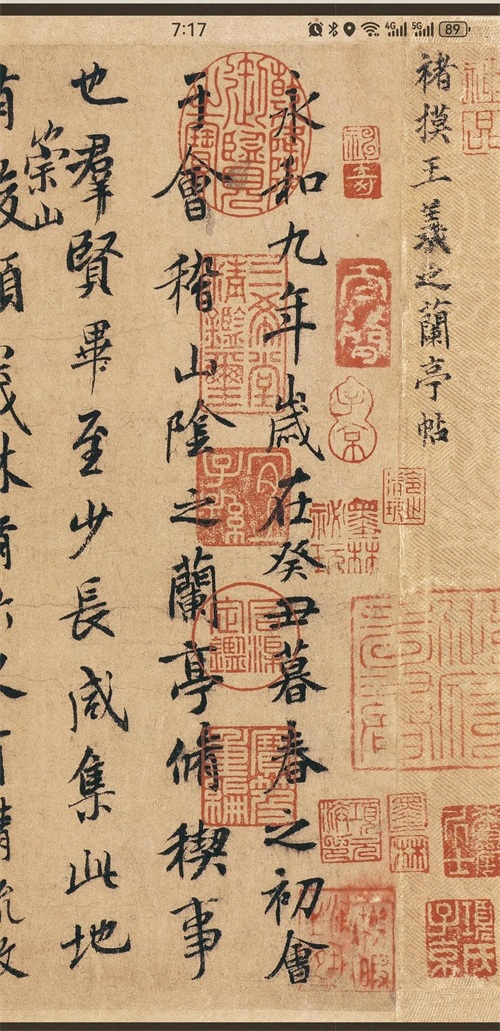 唐太宗太喜欢这个作品了,爱不释手,好东西没留给后人,自己带去地下继续欣赏!很自私啊!至今我们看到的都不是《兰亭序》真迹,你看到的都是“复制品”,而且复制品数量也不少,每个复制品对原件还原度有优劣之分,每个艺术水准也有高下。大家最关心还是哪个版本最接近原作,先看“神龙本”。