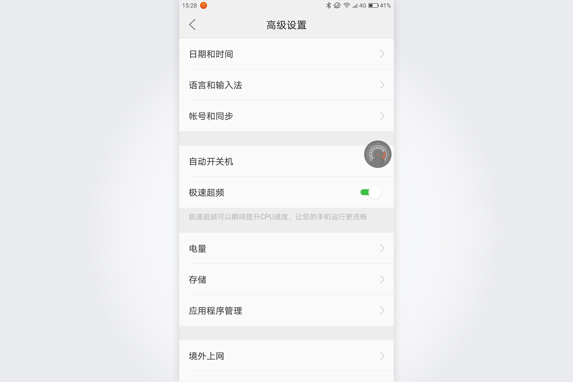 性价比的前提是足够的性能,ZUK依然没有忘记这点,Z2最新固件上还继续提炼了这个卖点,在设置里的高级设置里,还提供了“极速超频”选项,可以把原本2.15GHz主频的骁龙820一键超频至2.3GHz,合适那些爱玩大型手游的烧友们。