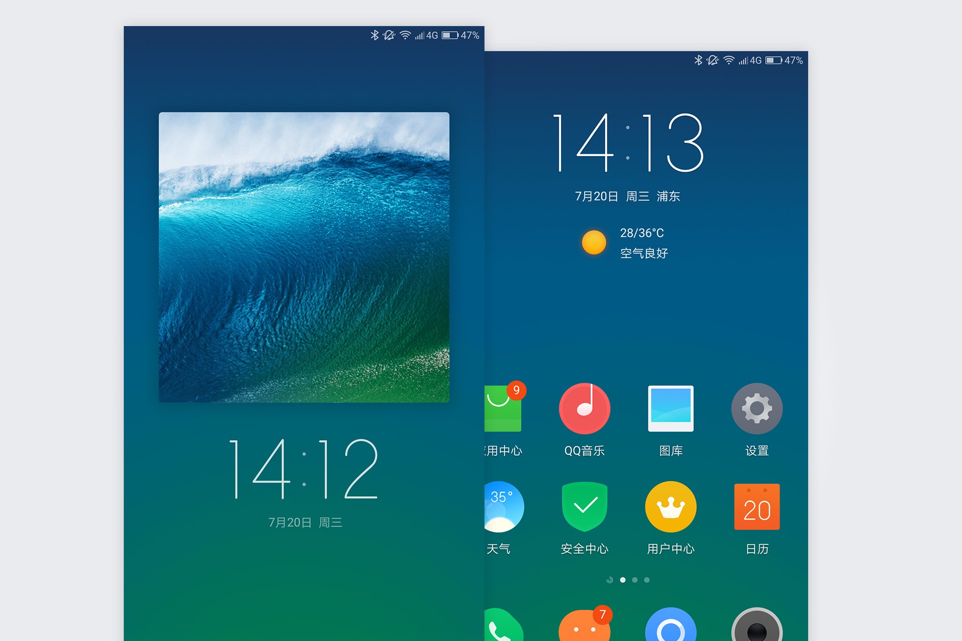 ZUI的桌面背景无法自定义具体图案,只能为锁屏的画廊壁纸区域自定义壁纸,然后锁屏与桌面的背景均采用你选择的画廊壁纸自动模糊处理。这点上ZUK的ZUI和一加氢OS在对桌面视觉体验的处理上极为相似。都是尽量让自己的UI具有高度辨识性、也能让部分审美较为另类的用户不管怎么设置壁纸都不会太过破坏统一视觉形象,图标在任何状态下都能清晰凸显在背景之上。不过有点觉得少了些什么,锁屏时候顶部状态栏左边空荡荡的,原来少了运营商名称的显示。