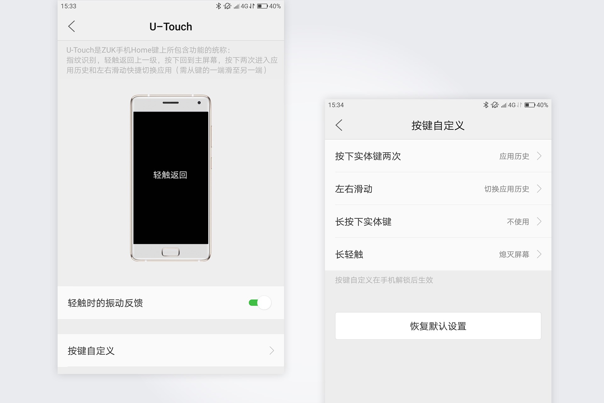 设置选项中把U-Touch放在一级目录足见ZUK对这项功能的重视。