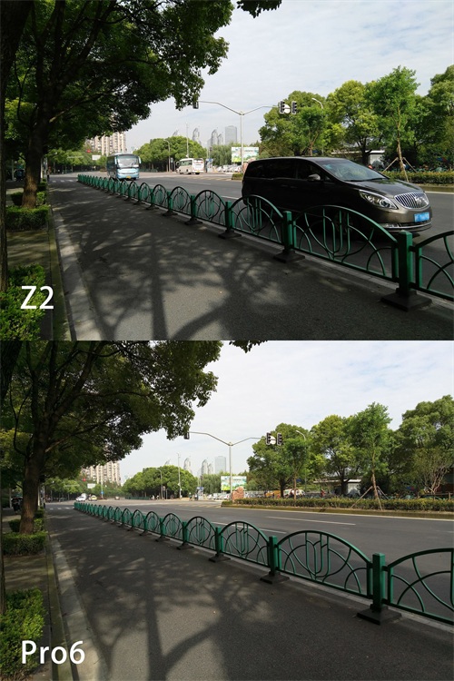 Z2和Pro6的傍晚夜景处理手法完全不同,Z2为了尽量讨好眼球和提升暗部细节,增加亮度,结果就是噪点严重,Pro6噪点抑制相对不错,不过暗部细节自然也就少了些。碍于篇幅就呈现这几组,相机的素质算是中规中矩,不能说优秀,也不算太差。成像速度倒是挺快的。