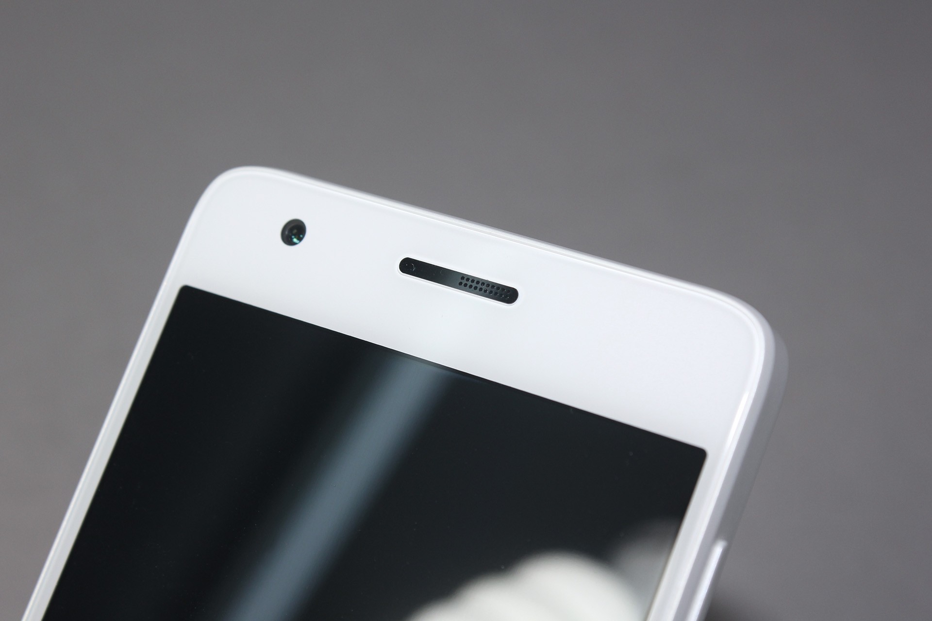 ZUK有个特色设计,和老罗的锤子差不多的方式把听筒附近相关传感器尽量合并收拢设计在听筒框内,这样在白色面板的机器上,视觉效果更清爽。左上角为800万像素的前置摄像头,f/2.0光圈。听筒右侧还隐藏有一颗呼吸灯。