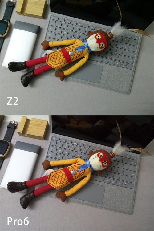 室内灯光下的静物,Z2略微泛绿,Pro6略有泛红,整体颜色相对接近真实。