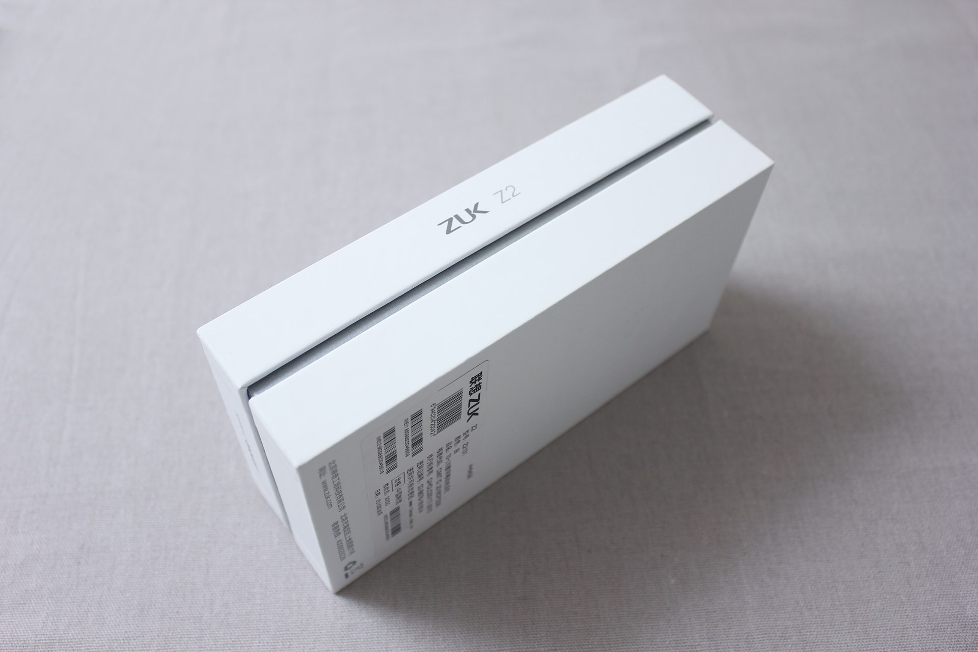 包装侧面特写,ZUK Z2的型号印刷在包装侧面正中。