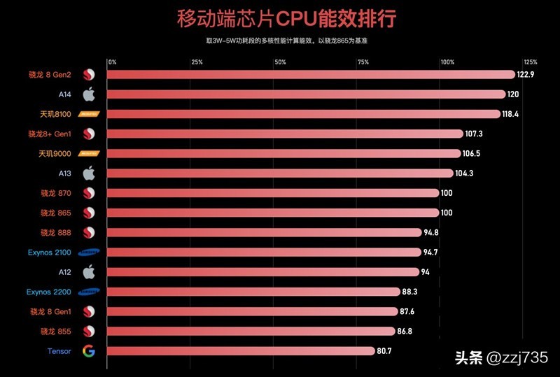 下面是主流手机 CPU 的能效表现排行,可以作为参考