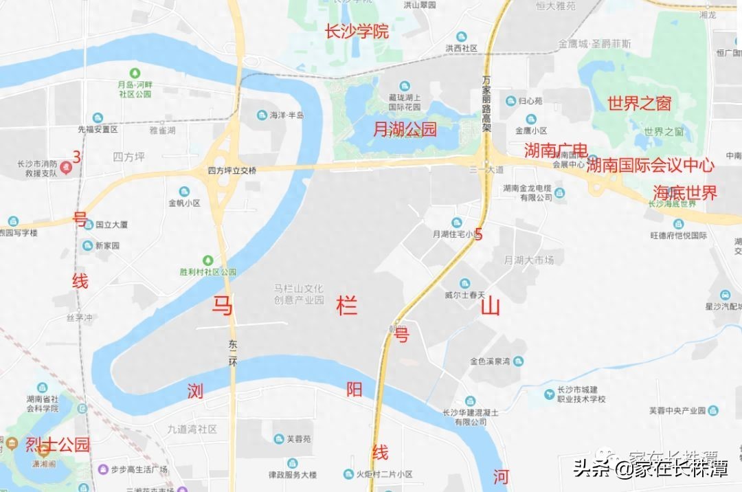 万家丽快速路经过马栏山,快速路下有长沙第一条BRT公交线在建设当中