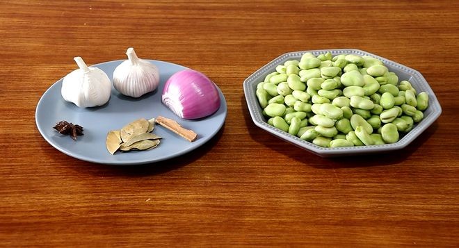 做法、1、蚕豆清洗干净;洋葱切块;大蒜直接剥皮就行。