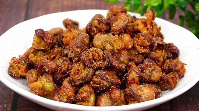5、撒点椒盐粉和辣椒粉调味,搅拌均匀,让每一个蚕豆都蘸到,吃起来脆脆香香的,比超市卖的炸蚕豆还要好吃。