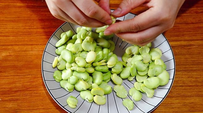 做法:1、先将蚕豆剥去薄薄一层皮,留下瓣。