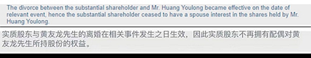 在此之前,“顺龙控股”在财报中,完全没有提及大股东黄有龙离婚一事。