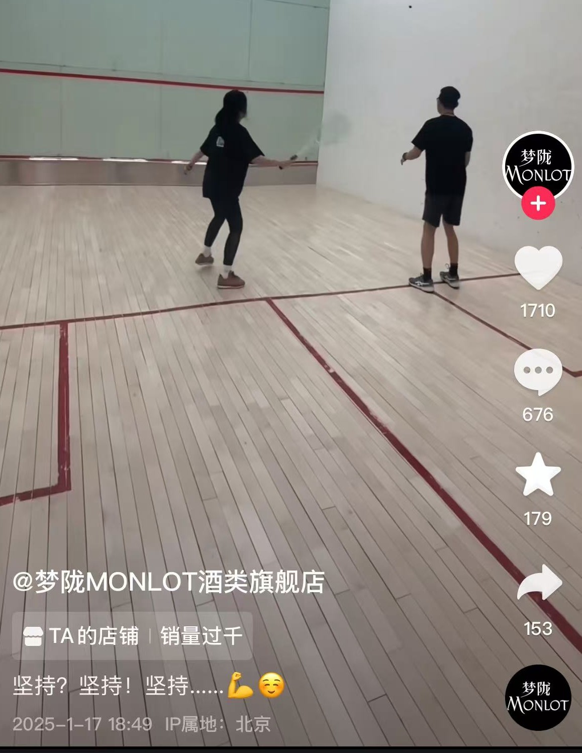 那是赵薇打壁球的动态,地址显示北京,身旁男子应该是她的教练。