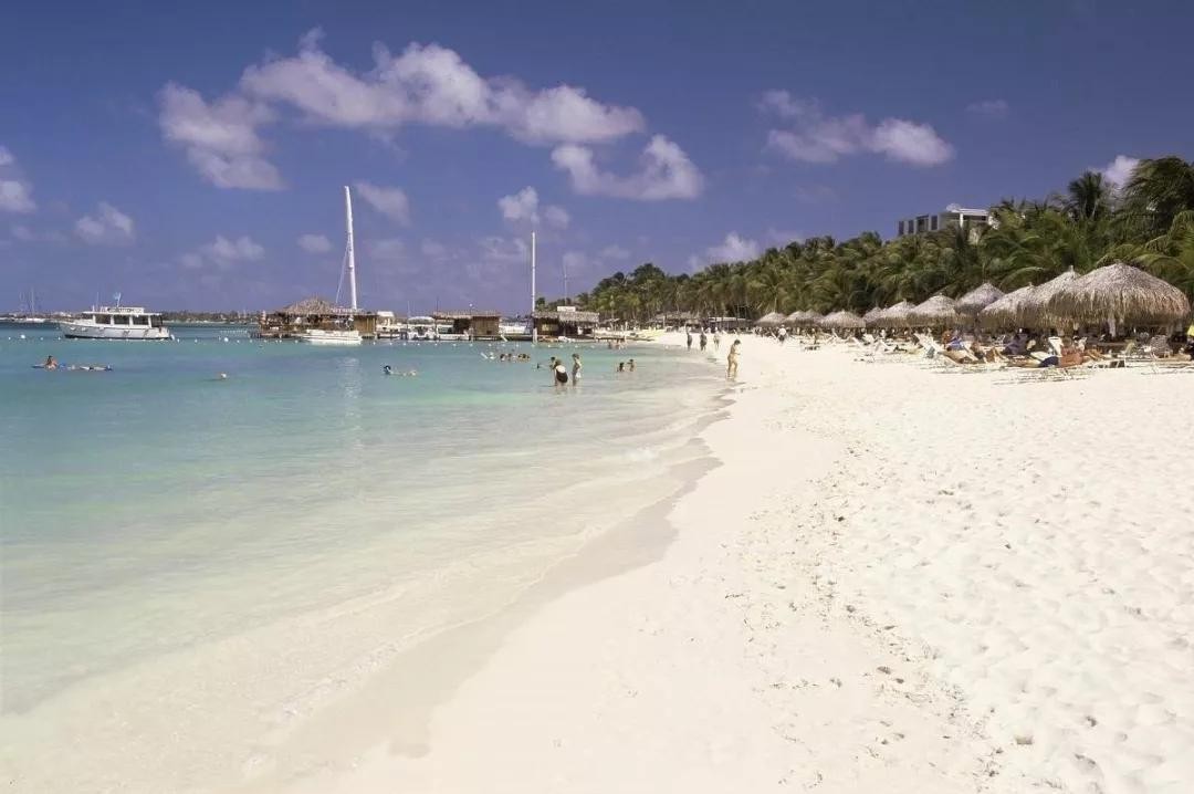 阿鲁巴岛西岸的棕榈滩是岛上主要的观光客集中地,以长达10公里的连续白色沙滩与海边的度假屋著名,又有蓝绿色海岸的美名。