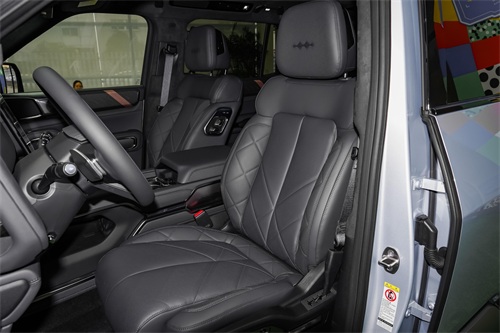 车身侧面同样颇具看点,平直的线条和高扁平比的轮胎设计,使得整车显得非常稳重,符合越野车应有的姿态。隐藏式门把手和黑色轮眉、侧裙等细节,则进一步彰显了其硬派越野基因。这些设计不仅提升了车辆的越野性能,还增加了通过性,让驾驶者在面对复杂路况时更加自信。