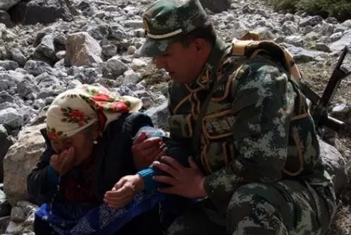 15个小时在暴雨中行走让布茹玛汗的身上有了很多伤口,小战士们看着眼前的“妈妈”感动的说不出话,但布茹玛汗更是满是眼泪只怪自己来的太晚了。