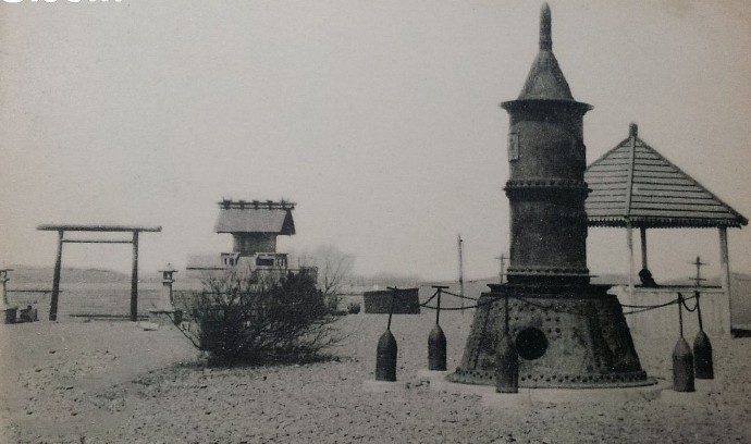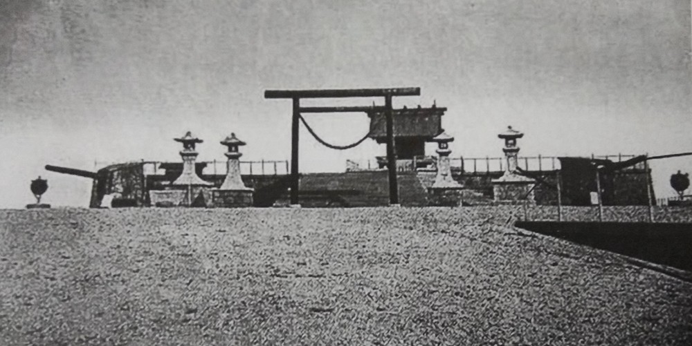 1905年11月——1907年3月,日本殖民当局在旅顺白玉山巅建起“白玉神社纳骨祠”,这座神社占地16829平方米。建筑分为地下和地上两个部分:地下部分建有供参观用的通道,走下10级台阶,并排是用钢筋水泥浇筑的永久性的三个拱形墓室。墓室墙壁上装有固定的铁架,存放日军陆军官兵战死者22723人的骨灰。地上建有供参拜用的木质日式风格的白玉神社。