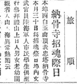 在日本殖民当局出版的旅游图上,清楚地标明白玉山塔和纳骨祠为旅游观光的“名所”。在日本国内大量发行纳骨祠明信片,组织国内的达官显贵和青少年学生前来参拜。旅顺白玉神社纳骨祠一时间俨然成为日本在本土以外的靖国神社。所谓靖国神社,就是定国神社或使国家安定的神社。靖国神社在明治维新后是供奉为日本战死的军人,包括中日甲午战争(1894-1895年)、日俄战争(1904-1905年)和第二次世界大战。如今存放着接近250万名战死者的灵位,其中有210万死于二战,包括14名二战甲级战犯和约2000名乙、丙级战犯的牌位。所不同的是白玉神社不但供奉战死者的灵位还存放战死者的骨灰,所以叫做白玉神社纳骨祠。