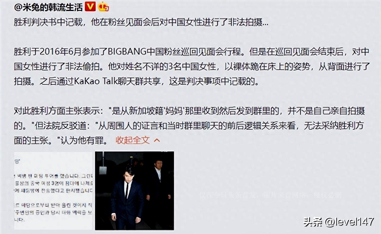 其次,李胜利被曝出非法拍摄三名中国女性的不雅照。这一事件发生在2016年六月,当李胜利在中国粉丝面前露面后,他的手机里出现了这些令人不安的照片。面对有关部门的质疑,他试图抵赖,声称这是新加坡中间人提供的,这一情节与他一贯的行事风格相符,总是试图将责任推卸给他人。