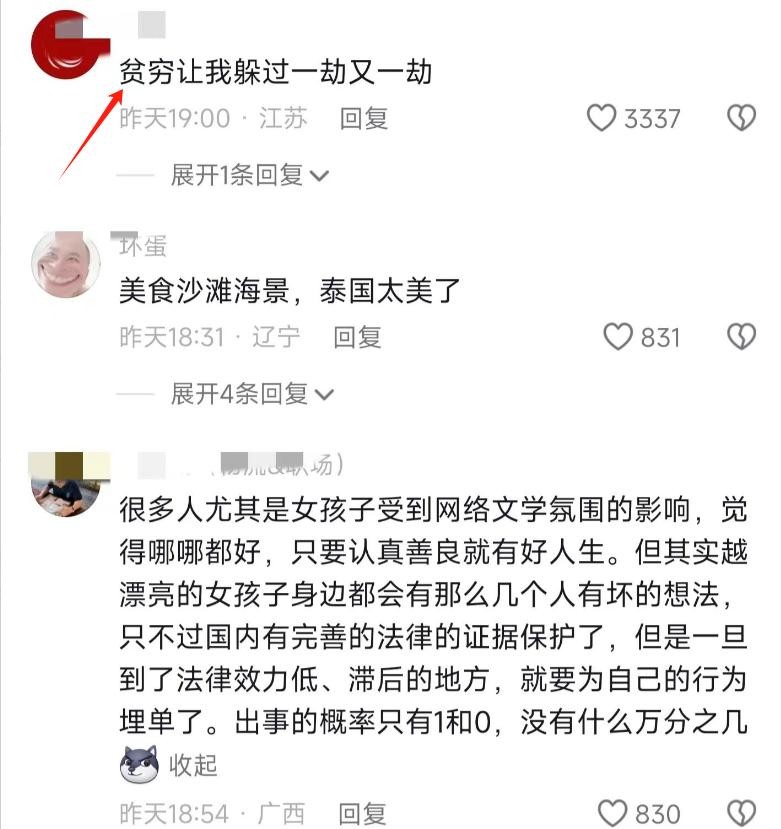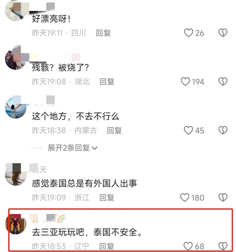网友三评论到:考虑去三亚度假吧,相比之下,泰国的安全状况可能不那么令人放心。