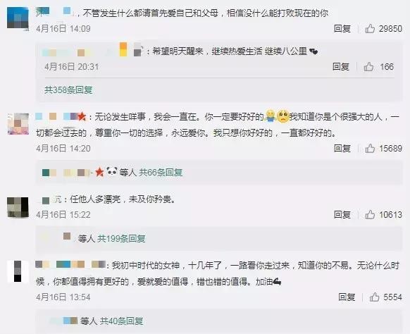 粉丝纷纷到她最新的一条微博留言,给她加油打气。