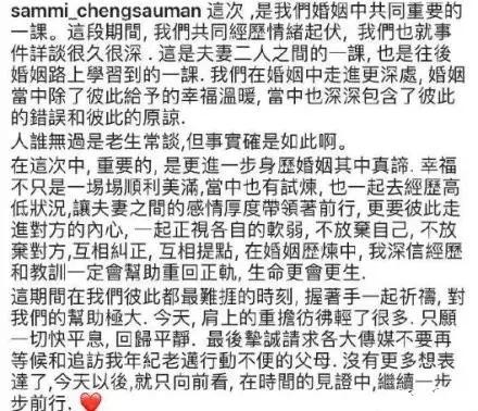 郑秀文表示这给她和许志安的婚姻共同上了一课,两人也就此事详谈了很久。这是夫妻二人之间的一课, 也是往后婚姻路上学习到的一课。只愿一切平息,回归平静。