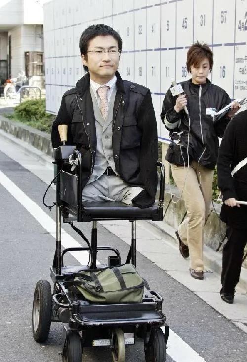 让电动轮椅能在人群中畅通无阻。他的勇敢,再加上他的残废,在早稻田大学,