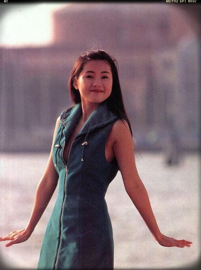 80 年代的港风时尚大胆、前卫甚至略带挑逗,但李丽珍的港风穿搭却总能保持一种亲和力和清新感。她善于在服装选择上融入柔软的色彩和流畅的线条,与其他女星展现成熟女性的性感与独立不同,李丽珍充满少女的天真与纯净。她的校服式连衣裙和轻巧的针织衫,透露出 “又纯又欲” 的美感,既显示了青春的活力,又不失女性的柔美。