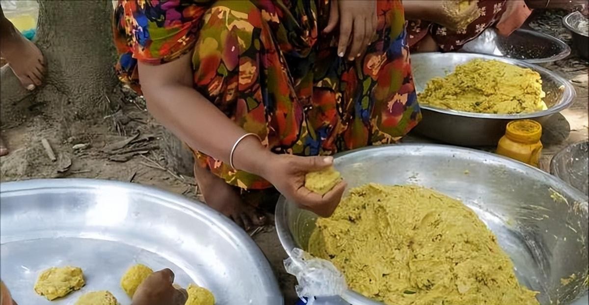 把煮成黑色的香蕉皮捞出来,放在阳光下晒干,然后和玛莎拉混合在一起用木棒捣碎,做成类似于咖喱饭一样的食物,外表看起来就和泥巴差不多。做好的食物可以就着米饭或者鱼肉吃,深受当地人的喜爱,家家户户都会做。