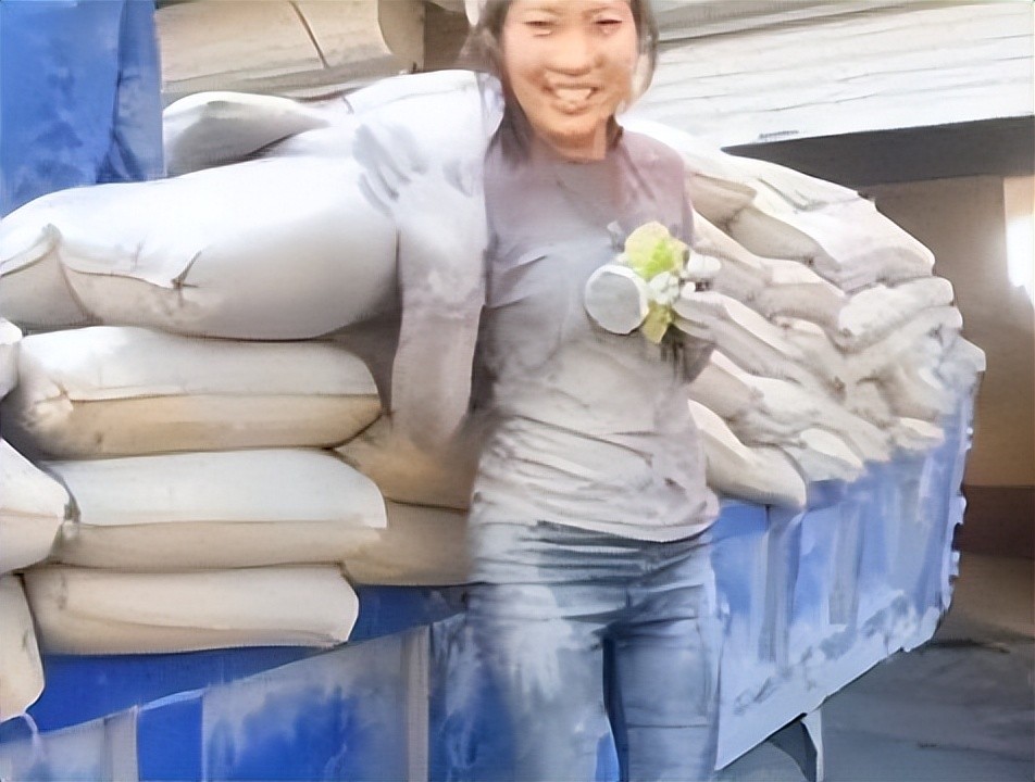 那一袋袋沉重的水泥被她吃力地扛在肩上,汗水顺着脸颊滑落,这样的画面看得人心疼不已。