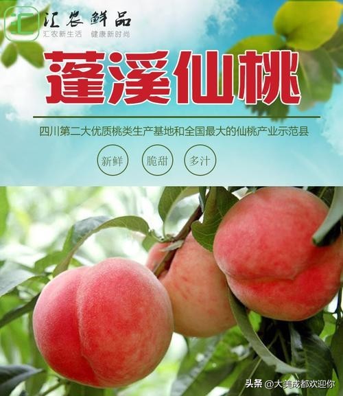蓬溪仙桃:历史悠久,早在唐朝时期,任隆镇八角村、黑白沟村种植的寿桃就是皇宫贡品,清朝时期改种为八仙桃,仍受上层社会青睐。外形优雅,果大,色泽鲜艳、自然芳香,清脆可口,可溶性固形物含量达 15.1%,富含多种人体所需的维生素和矿物质元素。