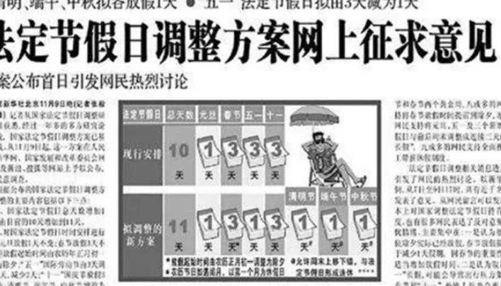 该方案表示:除了要将五一七天假期取消,还要将十月一的假期也取消。